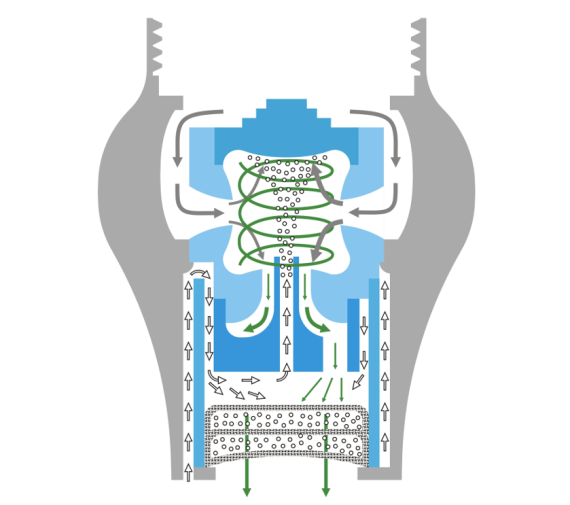 V horském potoce teče voda kilometry přes kameny, nerovný terén a četná spojení. Přesně podle tohoto vzoru jsme vyvinuli vodní vířič SPRING a vytvořili jsme technologii věrnou přírodě. Při víření vody v horském potoce nebo pomocí našeho vířiče SPRING dochází k rozvolnění shlukové struktury vody (vodní klastry). Díky tomu mohou molekuly vody vázat více kyslíku a voda se stává prokazatelně rozpustnější a volněji tekoucí.